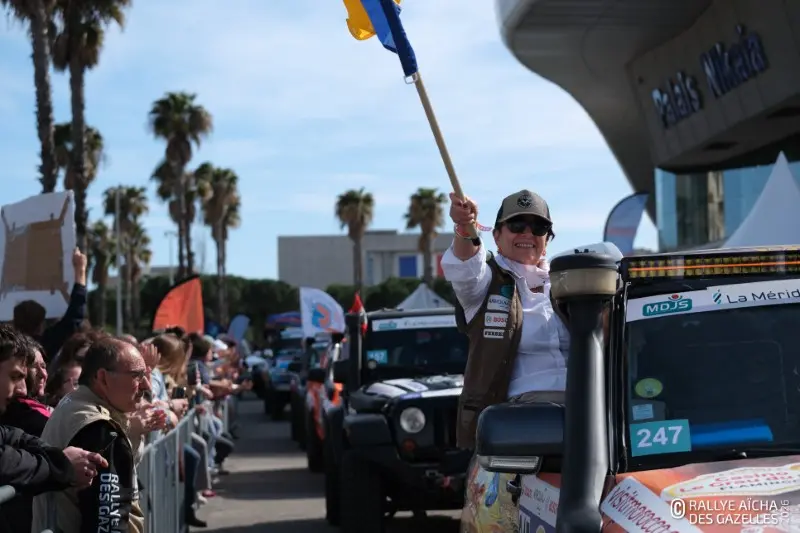 Au coup de drapeau donné par le Directeur Général des conserves de Meknès Aïcha, Ariel Devico, et par Mohammed El Hamouli, Consul Général du Royaume du Maroc à Marseille, les 103 équipages présents à Nice s’élancent sur la route, direction la cité phocéenne et le bateau de la Méridionale qui les emmène jusqu’au Maroc – où elle rejoindront le reste des concurrentes. Des 4×4 s’échappent des coups de Klaxon, des baisers lancés aux spectateurs et des sourires à n’en plus finir. « Pas besoin de chance, on y va au talent », s’écrie Nastasia, de la team 170 . Plus loin, Alexandre photographie sa femme Anaïs, embarquée dans l’équipage 116 . « C’est son premier rallye, l’aventure de ses quarante ans. Je suis heureux pour elle, je veux qu’elle se fasse plaisir !»