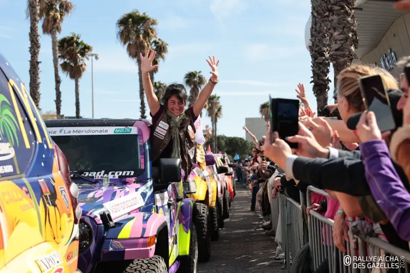 Chez les corses de la team 131 , le départ sonne comme un soulagement. L’an dernier, leur moteur a lâché juste avant la course, marquant ainsi la fin de l’aventure avant même de l’avoir commencée. « On est deux fois plus excitées et déterminées », assure Patricia, dont c’est le troisième RAG (Rallye Aïcha des Gazelles). « On est aussi très fières de partir avec, sur la voiture, le logo de l’association de ma cousine, Lumai (Lupus maladie auto-immunes). Cette course, c’est aussi l’occasion de mettre en avant son combat pour les malades et leurs familles. » Même sentiment de délivrance chez la team 214 de région parisienne. « C’est notre première fois, on a forcément l’appréhension du soucis mal anticipé, du problème de dernière minute… Maintenant que les vérifications sont passées, on est sereines… et excitées ! » Un mot vient à l’esprit pour décrire ce que doivent ressentir ces Gazelles, les anciennes comme les nouvelles. Il décrit un moment de plaisir, un bonheur intense … Gazelles, top départ : place au kif !