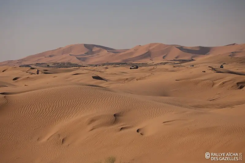Dans les dunes, les équipages peuvent évoluer ensemble pour s’entraider, notamment en cas d’ensablement. Le mot d’ordre du directeur sportif : avancer à son rythme, privilégier la sécurité… et surtout rester soudées.