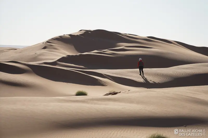 C’est l’étape qui fait le plus hésiter. Lors du Rallye Aïcha des Gazelles, les participantes affrontent deux fois les dunes marocaines : d’abord l’erg Chebbi (Merzouga), puis l’erg de Chegaga. Chaque équipage reste libre de choisir son itinéraire selon son niveau et ses ambitions.