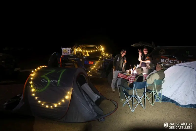 Cette deuxième matinée de course commence bien pour le duo de l’équipage 226 , avec la validation de leur CP 7. La nuit dernière, Séverine, infirmière et Zoë, coiffeuse, ont choisi de dormir à l’écart des groupes, pour mieux récupérer. « Le sommeil, c’est la clé de la sécurité. Sans lui, tu fais des erreurs de cap et tu finis par te perdre. » Pour leur deuxième fois ensemble, mère et fille avouent cette fois se laisser embarquer par le classement. « On a toujours envie de mieux faire, de grappiller des places, oui. Mais on sait aussi s’arrêter : même si on fait du 4×4 le reste de l’année, nous ne sommes pas pilotes professionnelles. Pour nous, le Rallye des Gazelles doit rester un amusement, sans que le stress prenne le dessus. On s’arrête quand on sent que l’on atteint la limite et que l’on risque de se mettre en danger. »