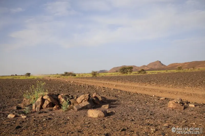 En route, le moral peut vite changer. Quand on les croise, les participantes de l’équipage 175 sont tout sourire. « Mais ce matin, c’était vraiment dur. Il fallait valider notre CP avant sa fermeture, à midi. Sinon, nous étions hors course pour le reste de la journée. » Les plaines de cette cinquième étape n’aident pas. « De loin, une montagne ressemble à une montagne… Le paysage est difficile à reconnaître. » D’autres endroits sont plus faciles. Dans la dépression de Tafenna – une curiosité géographique aux allures de cratère de météorite – la piste est marquée. Les Gazelles n’ont qu’à descendre… à condition de ne pas crever sur les pierres cassantes qui recouvrent le chemin.