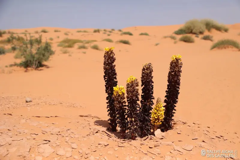 CP1, les voitures s’engagent dans une plaine entourée de collines. Le sol est piqueté de petites fleurs jaunes, le résultat des derniers jours de pluie tombée juste avant le début de la course. « Trouver des fleurs dans le désert, ça n’est vraiment pas commun ! Le paysage est incroyable, tout est inédit pour nous », s’émerveille le binôme de l’équipage 214 . Pour en profiter, Margot et Nolwenn alternent les postes à tour de rôle : « La navigatrice a les yeux sur sa boussole et ses cartes, la conductrice a plus de temps pour profiter du décor. »