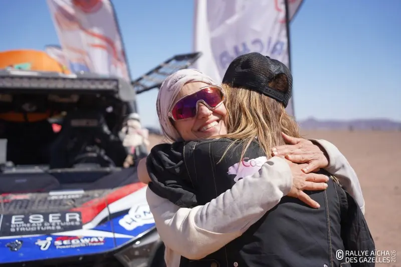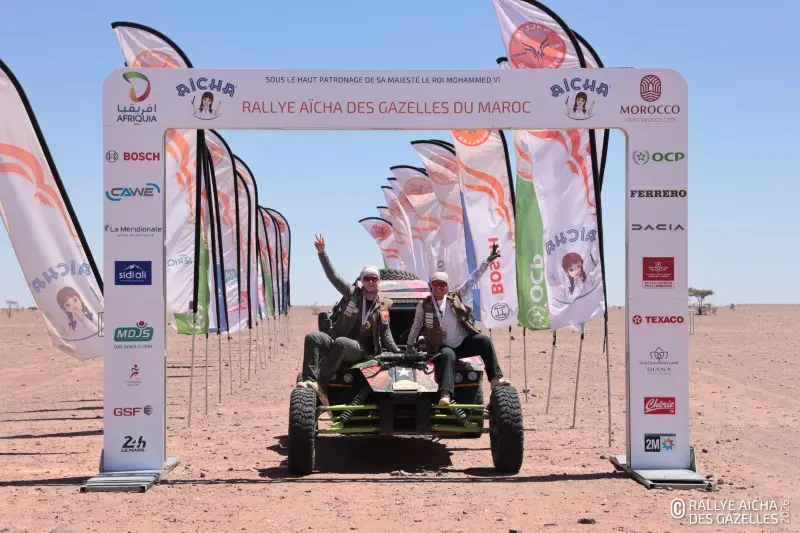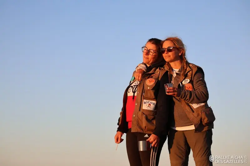 Jeudi, près de Foum-Zguid, les Gazelles bouclent le dernier kilomètre Pour ce huitième et dernier jour de course, il leur aura fallu sortir des dunes, traverser les abords du lac Iriqui dans le sud du Royaume et longer les montagnes du petit M’daouer, avant de rejoindre le bivouac et de passer l’arche qui marque la fin de leur voyage. Sur la ligne d’arrivée, l’équipage 101 est en pleurs. « On y est, c’est si fort ! On est toutes les trois entières, la voiture et nous deux. On a pas sorti les pelles, sauf pour aider les copines, on a pas crevé… on pensait pas arriver jusqu’au bout, et si ! »