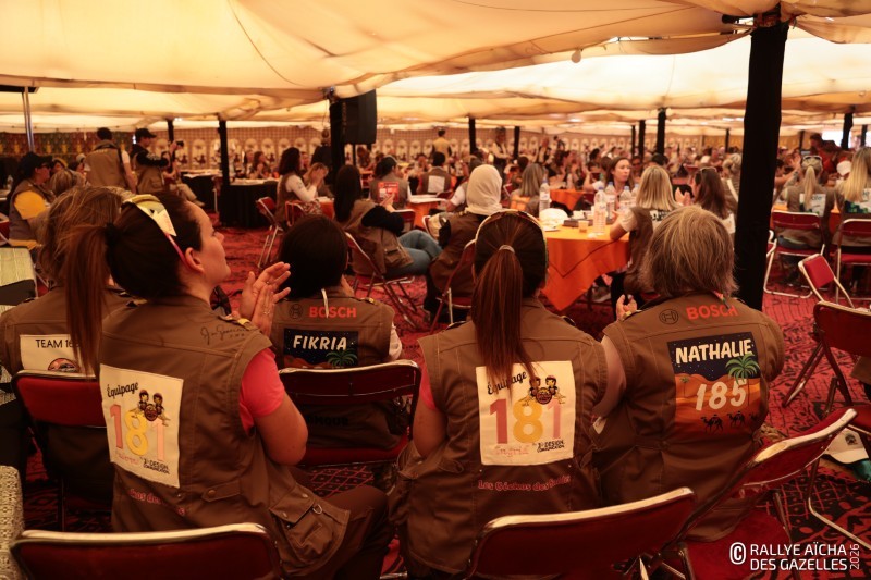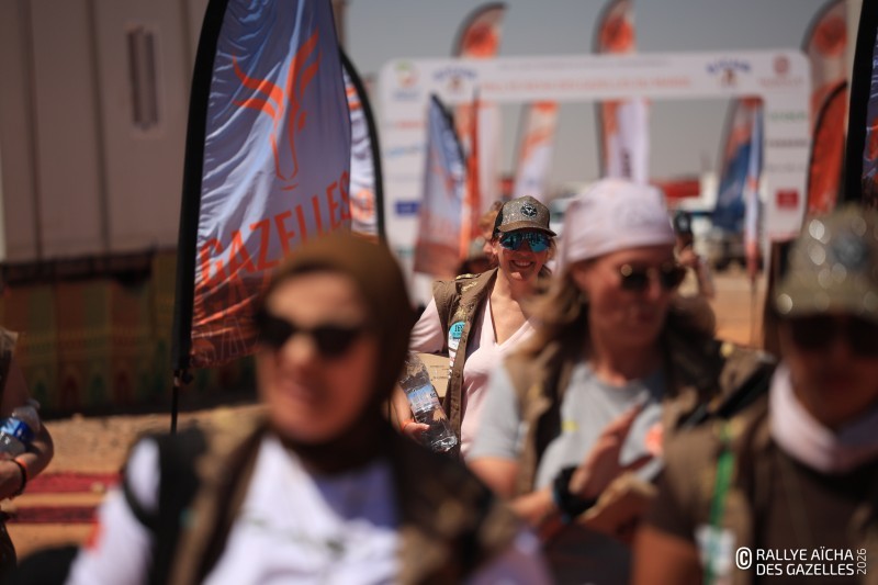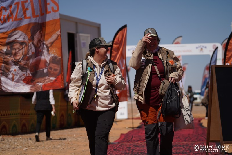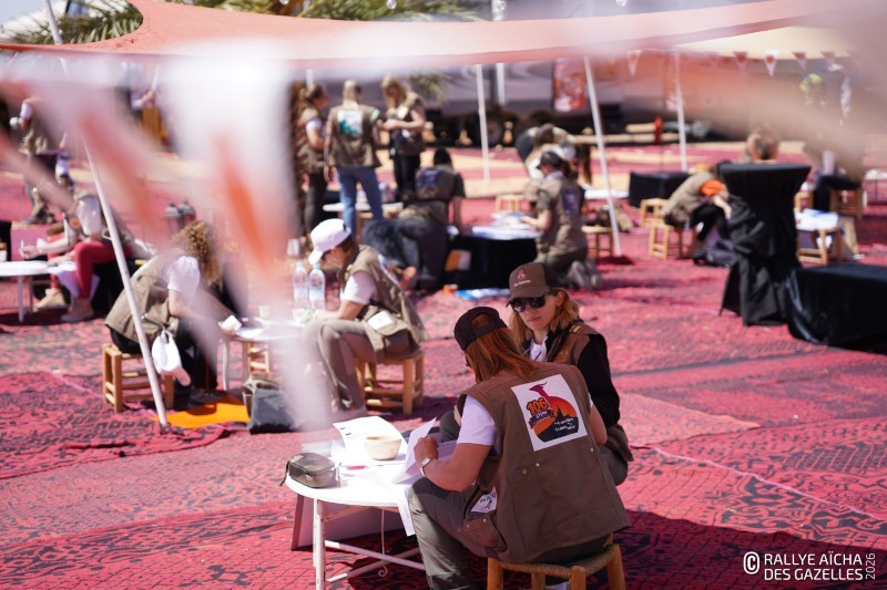 Une fois la traditionnelle photo de groupe effectuée, place au briefing. Aux commandes depuis trente-cinq ans, Dominique Serra, la fondatrice, retient difficilement son émotion : « Je crois en votre potentiel, en votre courage, à la définition de ce qu’est une femme. Une femme forte, qui s’engage. Certaines n’auront jamais votre chance. Je pense aussi à celles, partout, qui sont réduites au silence. » Faire le choix du Rallye Aïcha des Gazelles du Maroc n’est pas anodin. Pour Marina Serra Vrillacq, la directrice générale, cette course n’est pas juste une performance : c’est une manière d’être, d’avancer ensemble, de continuer même quand c’est dur. « Vous êtes bien plus que ce que vous pensez. Ce rallye est un point de départ pour encore plus grand dans vos vies, vos choix, vos rêves. »