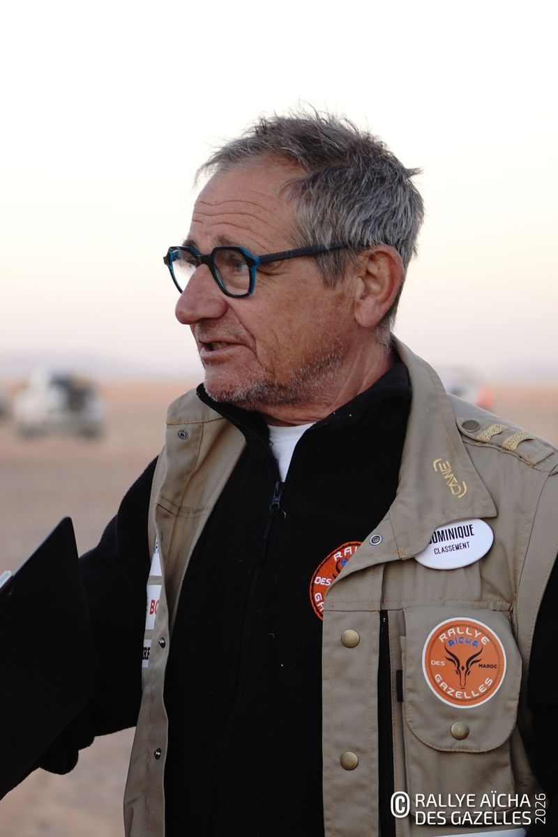 A Nantes, Clervie a entendu parler du Rallye Aïcha des Gazelles par un collègue, Julien, responsable médical bénévole depuis plusieurs années. « Je suis médecin urgentiste. En ville, tout est rapide. Ici, il faut gérer avec les contraintes de déplacement, de sable, la chaleur … il faut s’adapter et c’est ça qui est intéressant ! Les pathologies sont les mêmes que celles que je peux rencontrer au quotidien, mais l’organisation est complètement différente. » Pour s’y retrouver dans cette grande famille – 320 Gazelles pour l’édition 2026 et 178 encadrants – organisateurs, bénévoles français et marocains – les nouveaux sont guidés par les anciens. « On essaye de leur transmettre l’expérience acquise toutes nos années », raconte Jean-Luc, responsable du classement. A presque 73 ans, ce natif de Brest et ancien ingénieur entame cette année son 11 ème rallye. Et même s’il garde bon pied bon œil, il avoue avec malice être heureux de pouvoir ici « continuer à côtoyer des plus jeunes: ça permet de garder le cerveau plus vif ! »