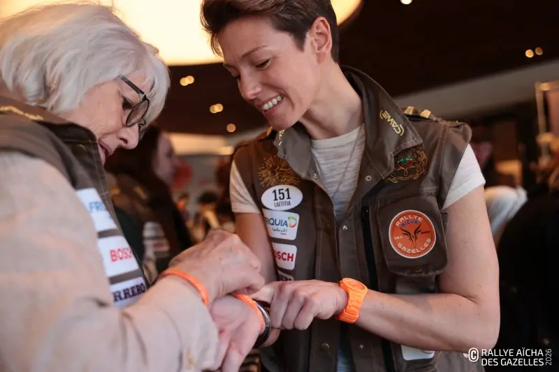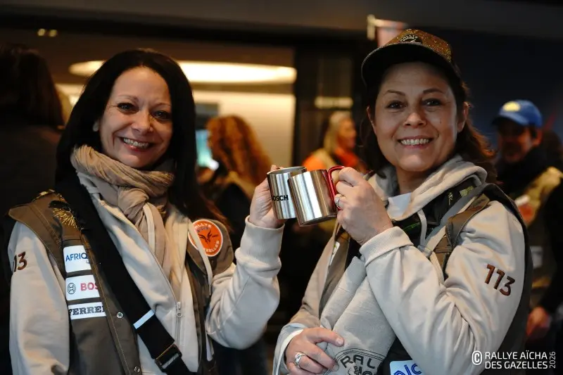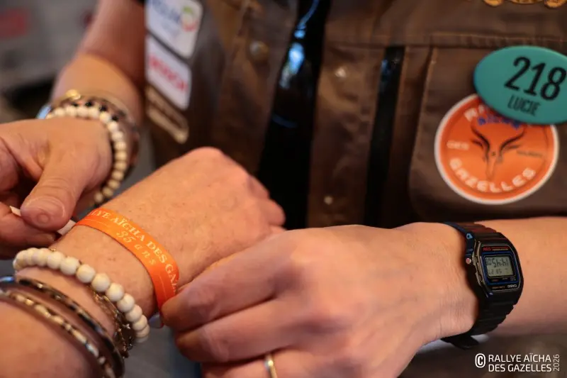 Dans la grande salle du Servotel de Nice, les 103 équipages au départ de France récupèrent leur pack de bienvenue avec dedans des classiques comme la casquette Maïenga, le gobelet Bosch en métal ou le porte clé. Surtout, les filles enfilent le gilet réalisé par l’entreprise Cawé, rehaussé cette année de liserés couleur or. Et passent au poignet le fameux bracelet qui scelle leur destin de Gazelles. La concrétisation de deux ans d’engagement pour Laure-Anne et Morgane, deux sœurs venues d’Île-de-France. « Pour récolter les fonds nécessaire à l’inscription, on a organisé des lotos, des concours de pétanque, des concerts… On n’avait qu’une hâte, c’est d’être là. » Une participation d’autant plus importante pour l’équipage 183 , après le cancer de Laure-Anne : « Tu ne sais jamais comment les choses vont se passer avec cette maladie. Alors il faut profiter, au maximum. Et faire des trucs un peu fous, comme cette course ! »