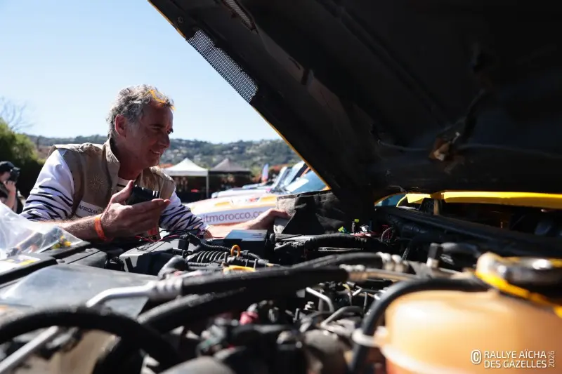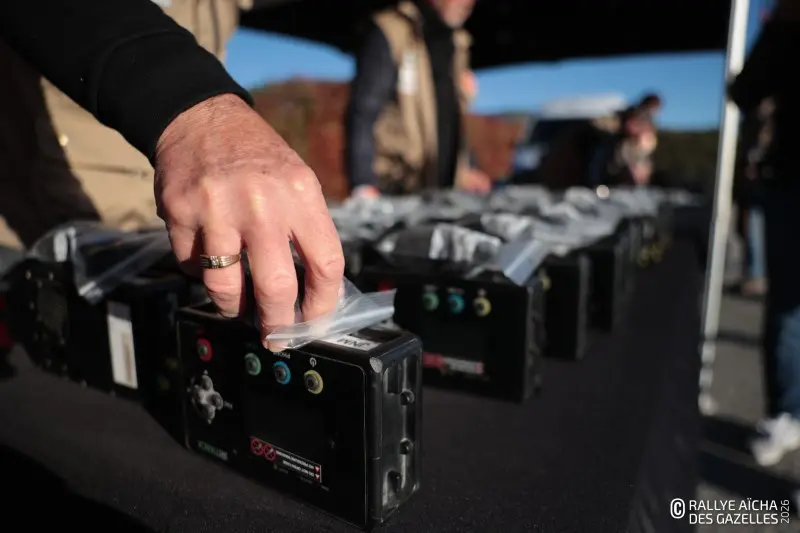 Sur le parking, les bénévoles s’affairent. Avant le départ, chaque voiture est inspectée. « On vérifie le matériel obligatoire, la présence des casques, des lunettes et de l’extincteur pour que chacune concoure en toute sécurité. Il faut aussi s’assurer que le GPS est bien désactivé pour éviter la triche », explique Alain, de l’assistance mécanique. Les organisateurs installent aussi les Iritrack, un système embarqué de localisation satellite qui permet aux organisateurs de suivre les véhicules en temps réel. Sur la Jeep 151 , César, lui, réajuste l’une antenne de la voiture, qui permet de calculer au plus près la distance parcourue par les équipages. Réalisent-elles, les Gazelles, que demain, elles embarquent à Marseille ? Qu’elles vont traverser la Méditerranée pour vivre l’aventure d’une vie ? Nathalie et sa coéquipière Émilie, de la team 154 , n’en reviennent toujours pas : « j’ai l’impression que ce n’est pas réel. On a tant attendu ce moment et maintenant c’est là … »